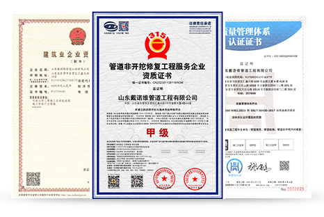 山東戴諾維管道工程有限公司位于美麗的黃河入???中國東營,是從事管道內(nèi)襯修復的專業(yè)化公司,主要業(yè)務(wù)有:管道非開挖內(nèi)襯修復,管道內(nèi)襯PE管修復,管道內(nèi)襯不銹鋼修復等。